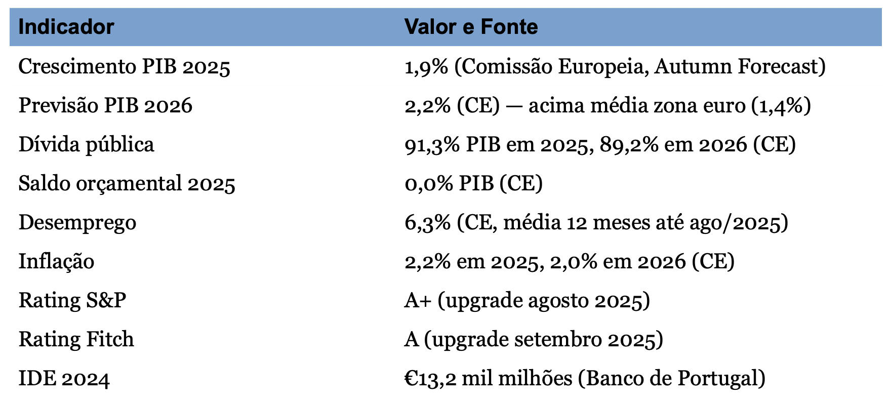 Sobre a sustentabilidade fiscal: A Comissão Europeia projeta défice de 0,3% em 2026 e 0,5% em 2027. Os excedentes recentes resultaram em parte de fatores extraordinários (inflação a aumentar receitas nominais, fundos europeus). Não é certo que a trajetória se mantenha.
